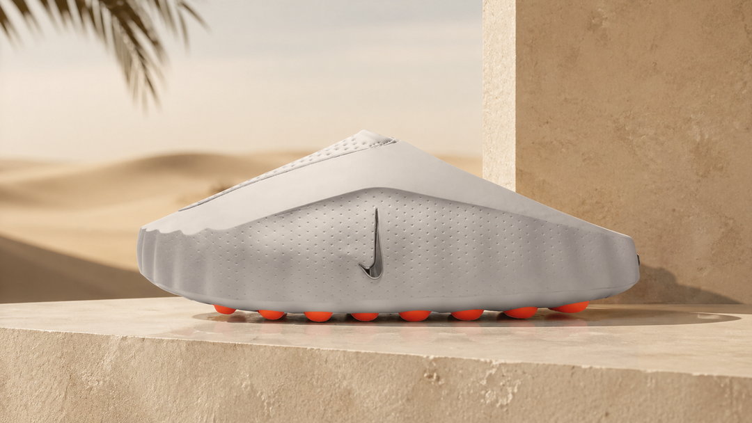 Released by Nike's ACG team in early 2026, the Mind 001 is the response to Yeezy Slide saturation. One molded upper, no straps, distinctive cutout pattern across the toe area, and Nike React foam underneath instead of basic EVA. The result is a slide that feels structured rather than squishy. You walk on it instead of sinking into it.